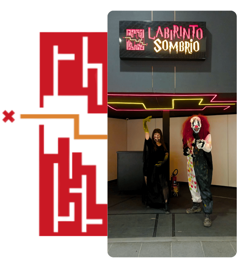 O Labirinto Sombrio é uma atração imersiva de suspense onde cada passo é imprevisível. Ambientes escuros, personagens em ação e uma narrativa que faz você duvidar do próximo movimento.